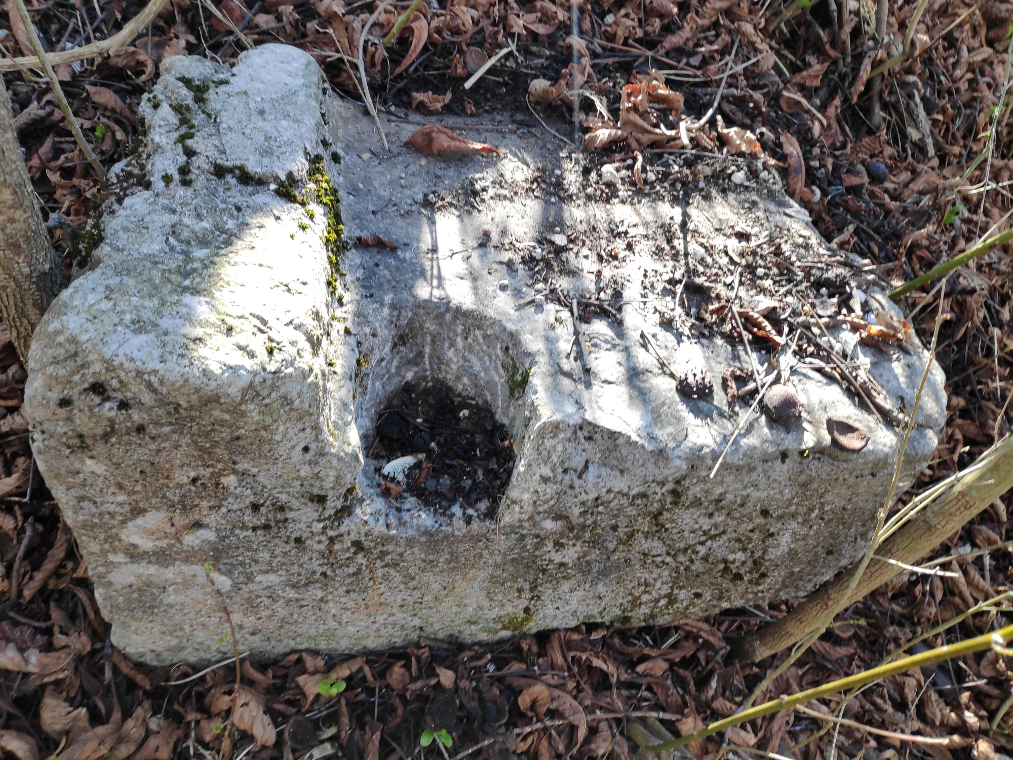 Около дупката ( която е с диаметър около 30 – 40 м. и дълбока около 6 м.) има няколко по-едри монолитни каменни блокове с четвъртита форма и те са единственото, което подсказва, че тук е имало нещо. Отгоре се вижда, че в дъното на дупката има продълговат жертвеник, съборен на земята (видим и на снимката горе), както и една купчина камъни в западния й край. Тези камъни запълват входа към пещера, която е изпълнявала функцията на аязмо или поне така прочетох впоследствие…