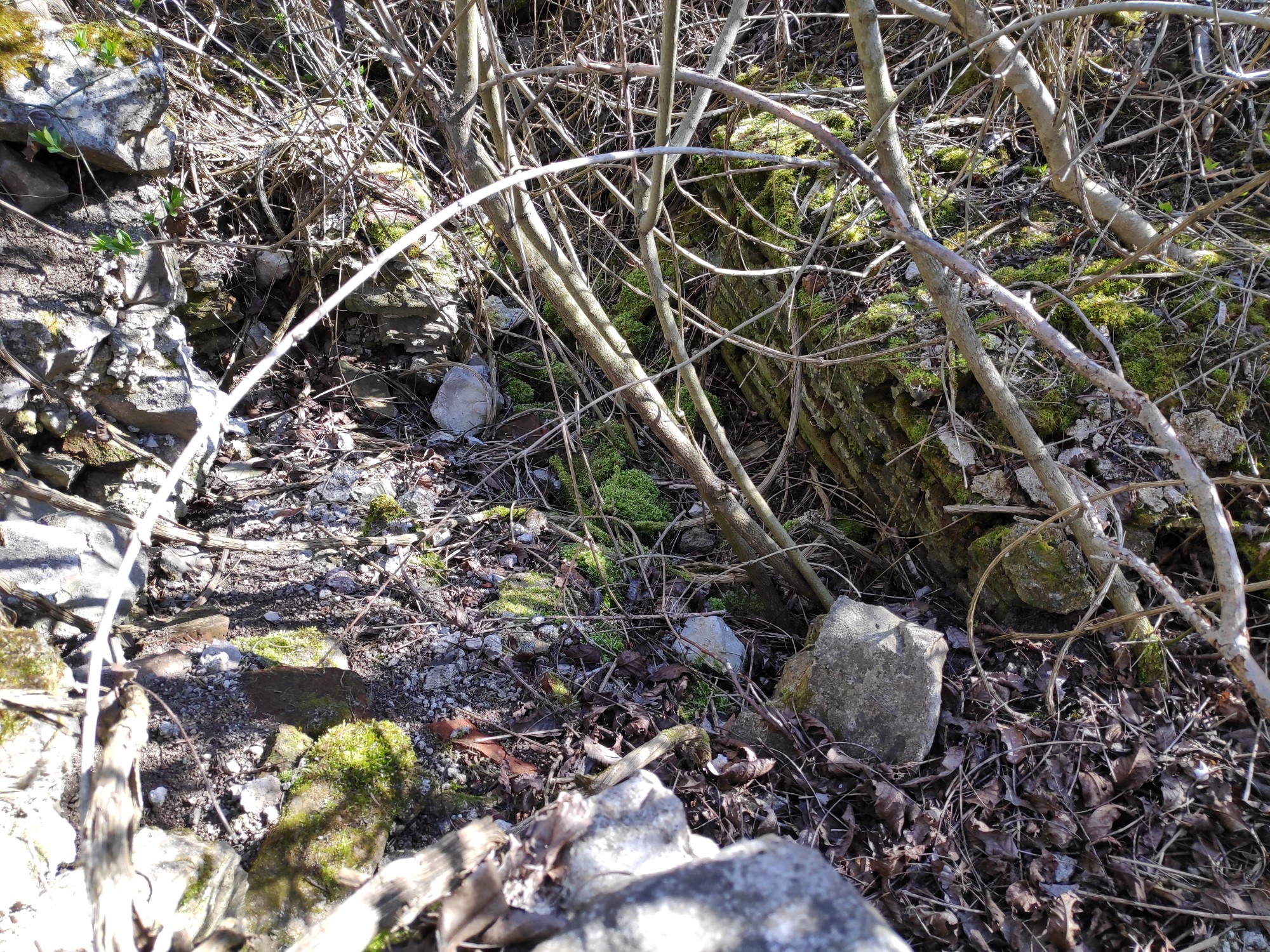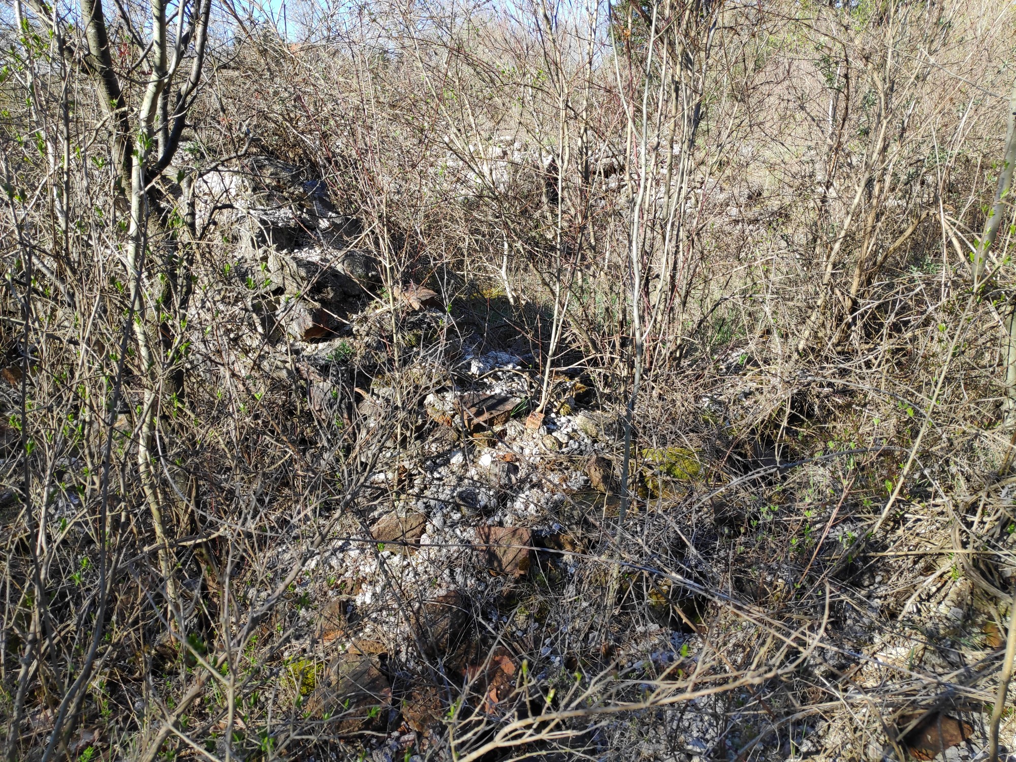 Храмът или онова, което е останало от него, се намира в карстов въртоп навръх едно невисоко възвишение югоизточно от Мека црев. С други думи – в дълбока камениста дупка, обрасла пълноценно с трънлив храсталак. Не знам какво точно съм си представял да видя тук, но перспективата да си надера дрехите и изпотроша краката почти ме изпраща обратно към вкъщи. Плюс това да напомня, че иде реч за храм на Асклепий, чието свещено животно, както е известно, е змията. А това тук наистина си е един сто процентов змиярник.