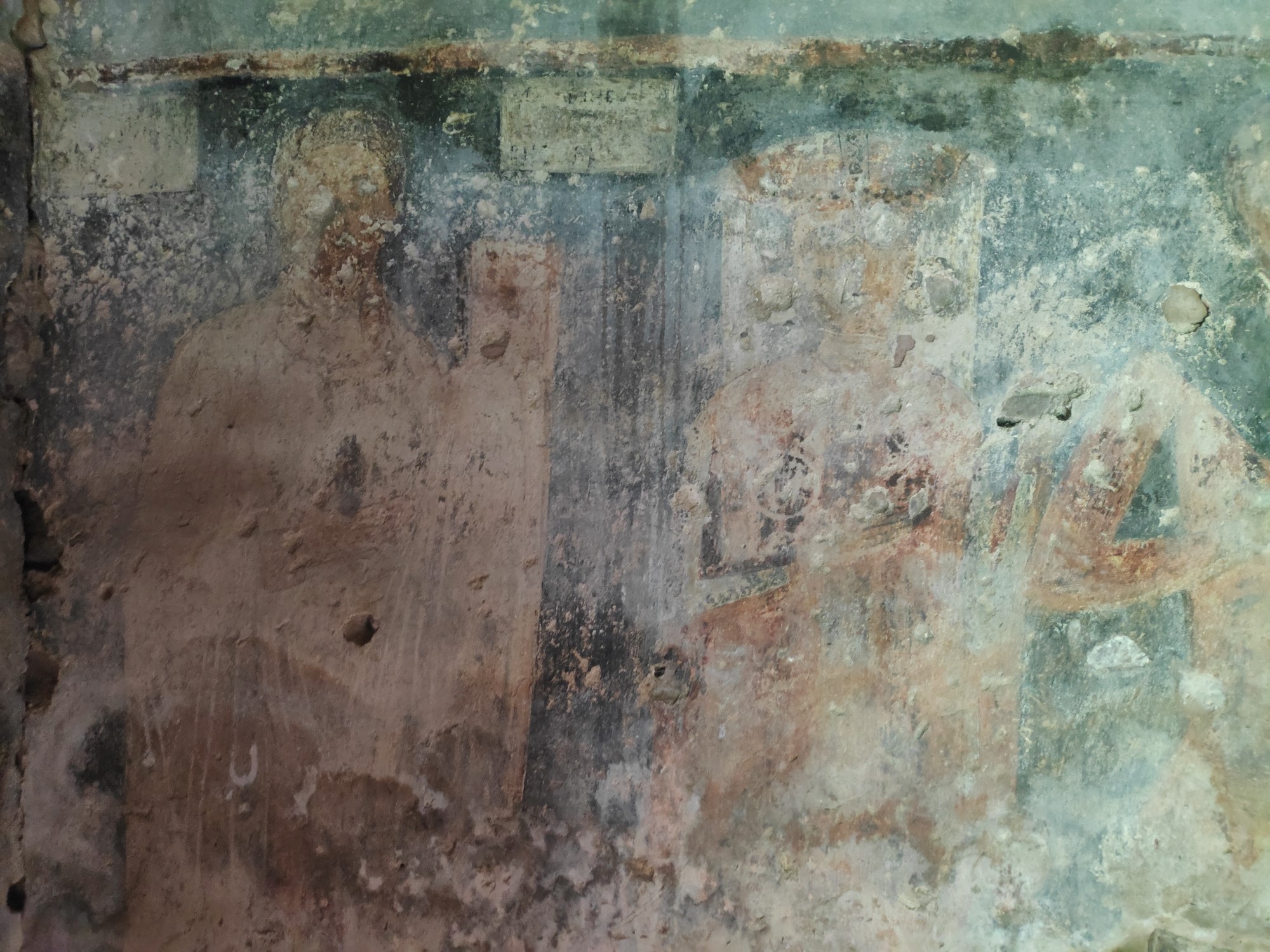 Доколкото разбирам, част от стенописите са свалени и се съхраняват в Археологическия музей в София. А доколкото може да се съди по експозицията на музея, това се отнася единствено за изображението на св. Петър и една сцена, изобразяваща Успение Богородично. Помествам ги и двете тук, за да оцените как са изглеждали стенописите някога.